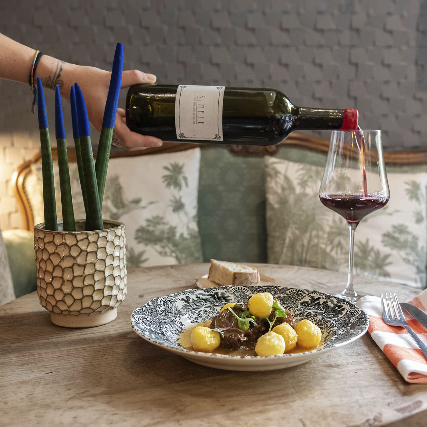 Disfruta de una comida de autor con platos y vinos especiales.